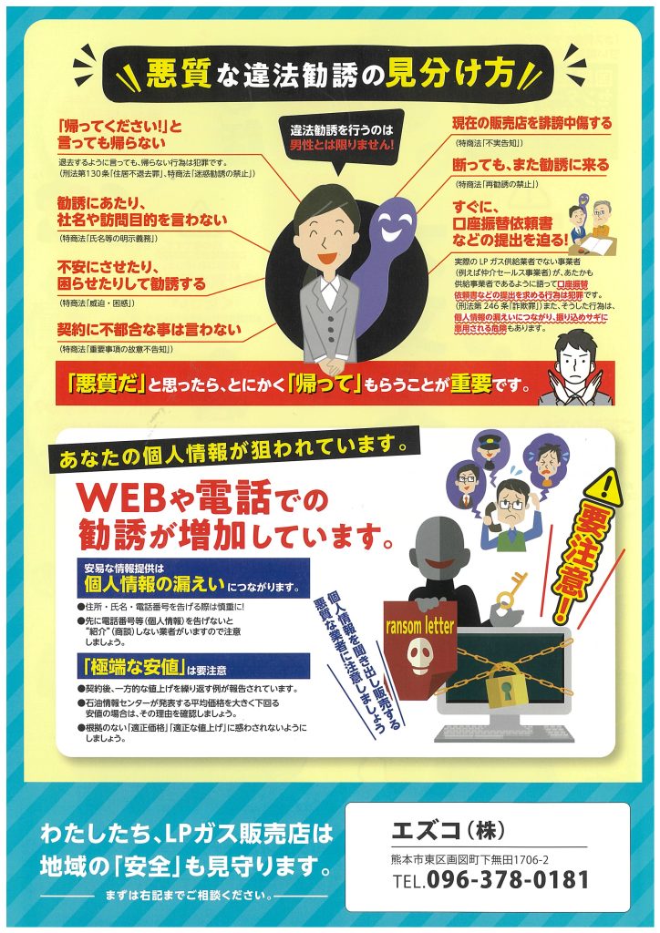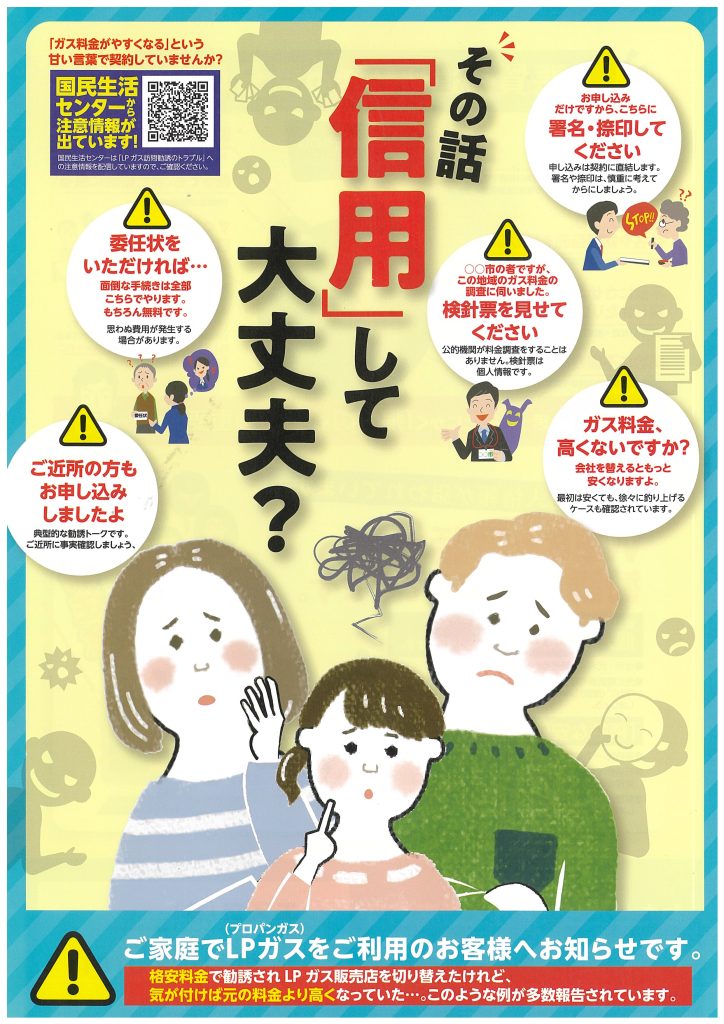 ガス協会からお客様へ「ガス料金」など「個人情報」に関する問い合わせをすることは決してありません。